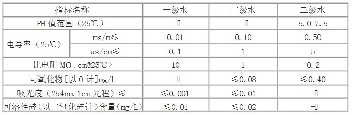 1、由于在一级、二级水的纯度下,难以测定其真实的PH值,因此对一级水、二级水的PH值范围不作规定;